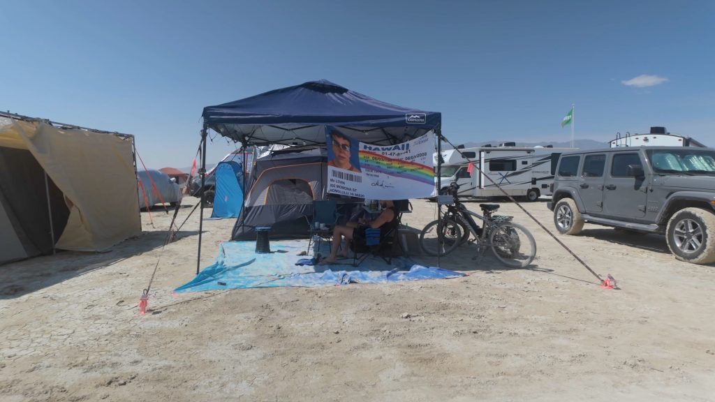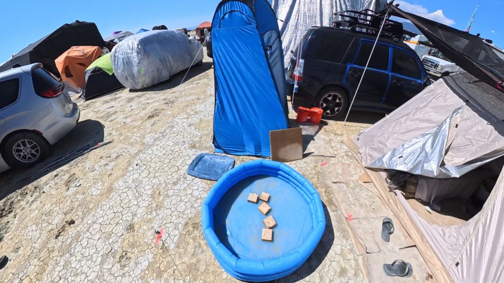 This photo captures the Temple structure at the Burning Man festival in the Black Rock Desert of Nevada.